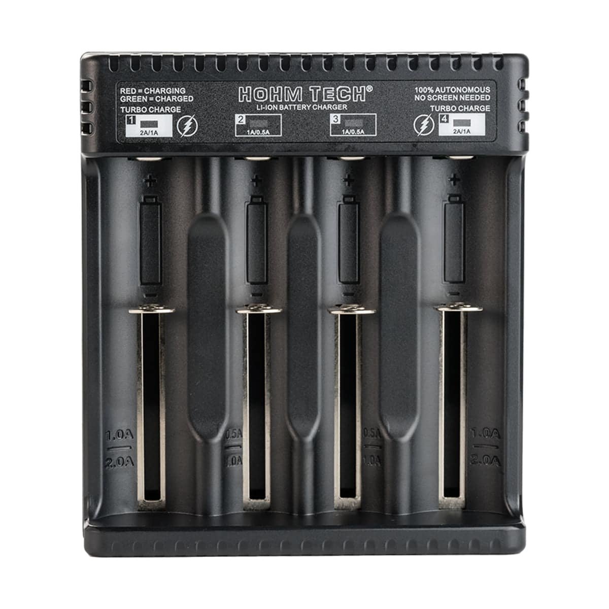 This isn’t your average charger. The Hohm Tech School 4-Channel Battery Charger boasts a range of features designed to maximize your vaping experience: