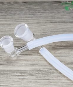 The Whip Adapter is made from high quality medical grade silicone tubing which connects 2 glass joint whip adapters. One of which being an 18mm female glass joint whip adapter and the other is your choice of either an 18mm female, 18mm male, 14mm female or a 14mm male glass joint whip adapter. This joint type and size has to connect to the glass joint on the rig you intend it for.