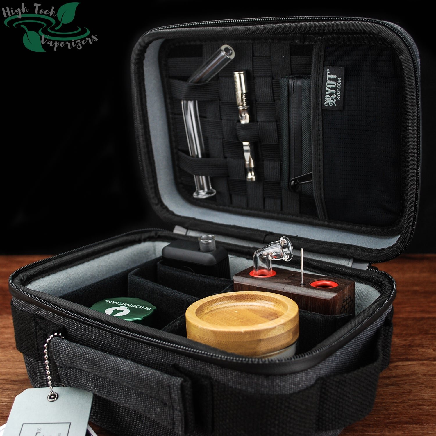 The Ryot Safe Case can handle a wide range of storage tasks and is up to the challenge of storing just about all portable vaporizers. This is due to the removable padded walls. This kit comes with 2 long walls and 3 short. Ontop of all the storage down below is the X-strap system located in the lid. Along with a mesh pocket and small zip bag. The small safe case will likely do the job for most but if this is not going to handle your kit then check out the large safe case.