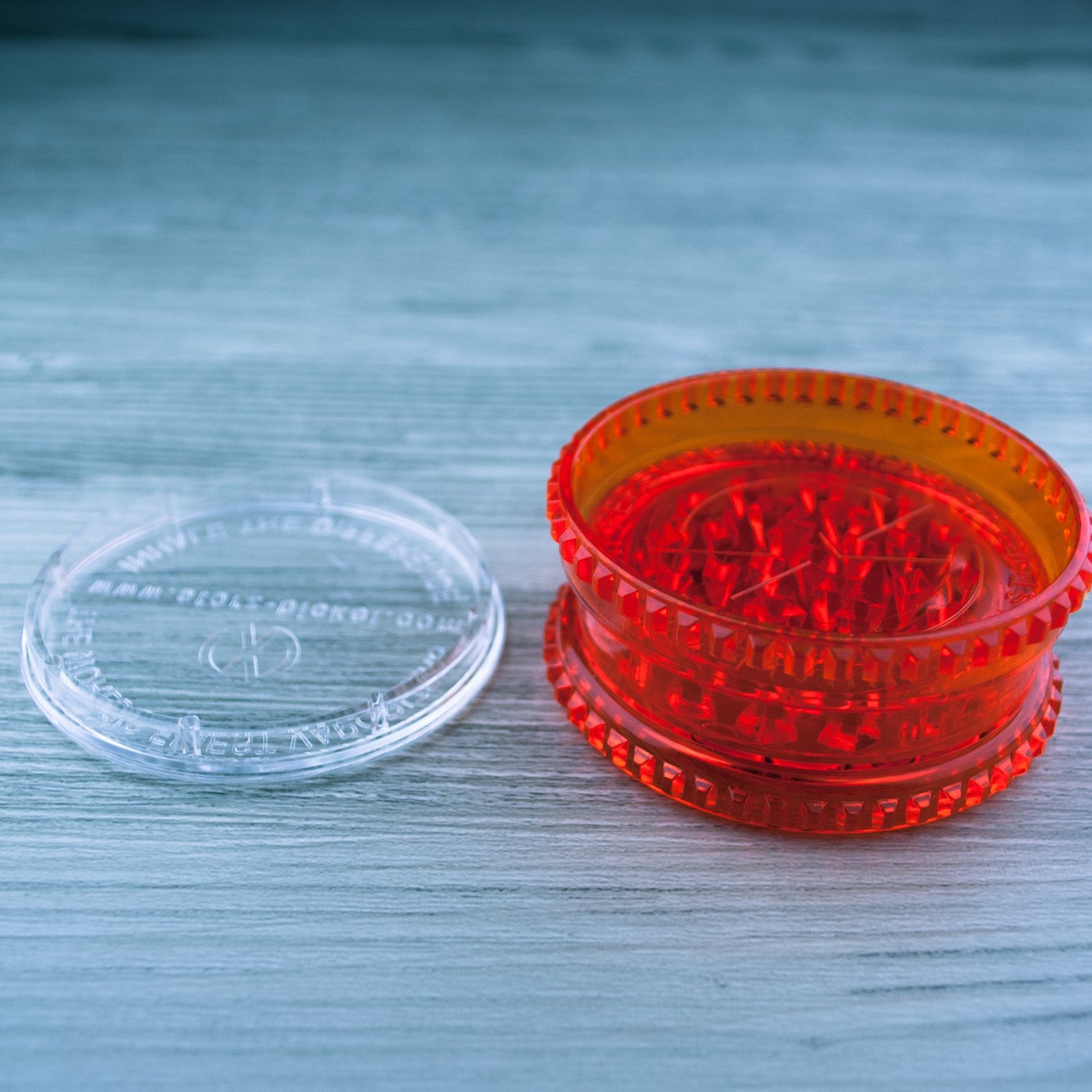 The Storz & Bickel grinder is 100% acrylic and as far as acrylic grinders go it is one of the best. Besides grinding your herb in preparation for vaporizing it also has a storage compartment in the lid.